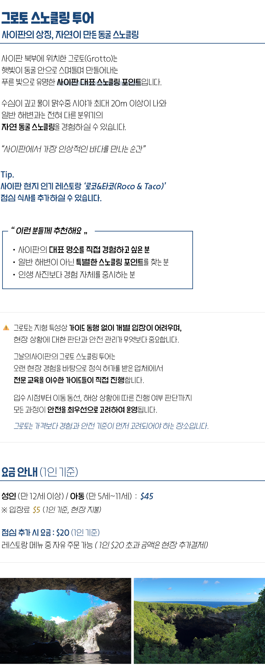 그로토 스노클링 (점심 추가 가능)